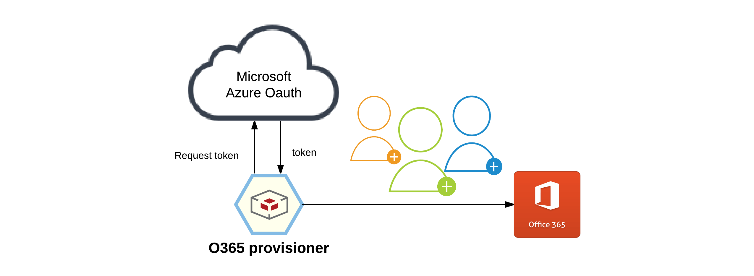 Our O365 provisioner sends a token request to microsfot azure office authentication and processes their return of a token authentication which we then provision to the user that it is assigned to, allowing them access into all of their O365 applications from day 1.